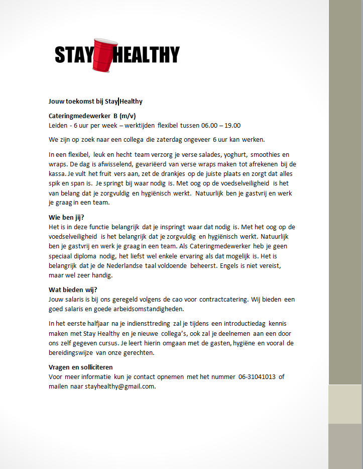 Vacature cateringmedewerker m/v